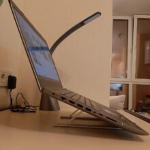 I looked at many different stands before purchasing this one. I use a thin 15″ laptop and was primarily concerned that the front hooks would come in the way of the wrist resting on the palm rest. My other concern was that the laptop would wobble because the stand is small (which helps because it fits easily in the side pocket of a book bag).
