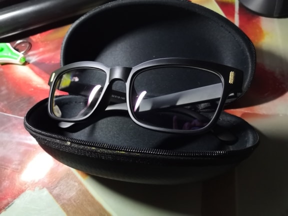Glasses are plastic, there are no scratches, came in a soft package. Let's see if the eyes will get tired from the PC or not.