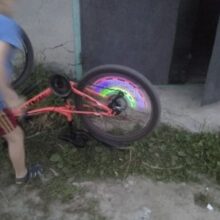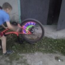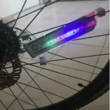 This is pretty cool LED light for bicycle wheels. Each light comes with 3 small batteries. It has motion sensor. It only lights up, when the wheel is moving, when it's stopped - it turns off in few seconds. It has a connector for kids' bikes and fits regular valves (the same as the car one).
