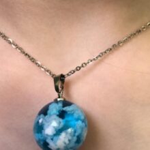 The vast beauty of the sky, right at your neck Capture a relaxing, soothing piece of the sky…and keep it right at your chest for peace and calm wherever you go. Our Blue Sky Cloud Resin Necklace would be perfect for a bit of sky-bright happiness. Make a statement with…