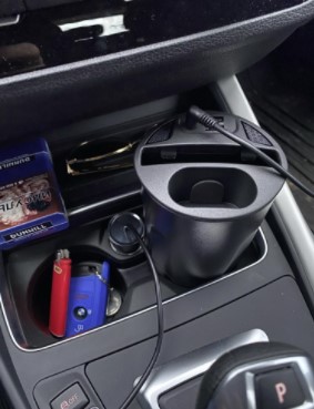 Measuring 4.3 x 3.4 x 3.2in / 110 x 88 x 82mm, our charger fits standard vehicle cup holders for a snug fit. Simply plug in the port adapter to power up the cup!