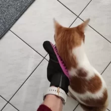 The cat enjoyed its first grooming session with the glove.