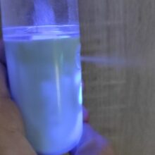 A built-in light indicator lets you know the status of your  sprayer. A solid blue light indicates the device is on and in use while a red flashing light means the device is currently charging. If you see a solid red light, that means the device is fully charged and ready to use.