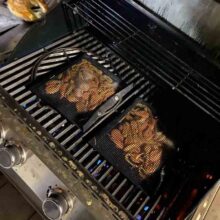 We got this in the middle of winter which clearly isn’t peak grilling time but my husband is one of those guys who when he want’s grilled food is willing to stand out there at the grill in like 10*F weather and grill his meat. Suffice it to say so far we have only used this once so far. In that one use, it worked great. It kept the grill a little cleaner and made sure nothing stuck to it which also made it easier to flip. The food cooked well and evenly while inside the bag and tasted good. It does say not for open flames so be careful not to use it over a high flame that will touch the bag. I’m assuming it handles heat but will still melt in a direct flame which would make it pretty useless. The price seems reasonable.