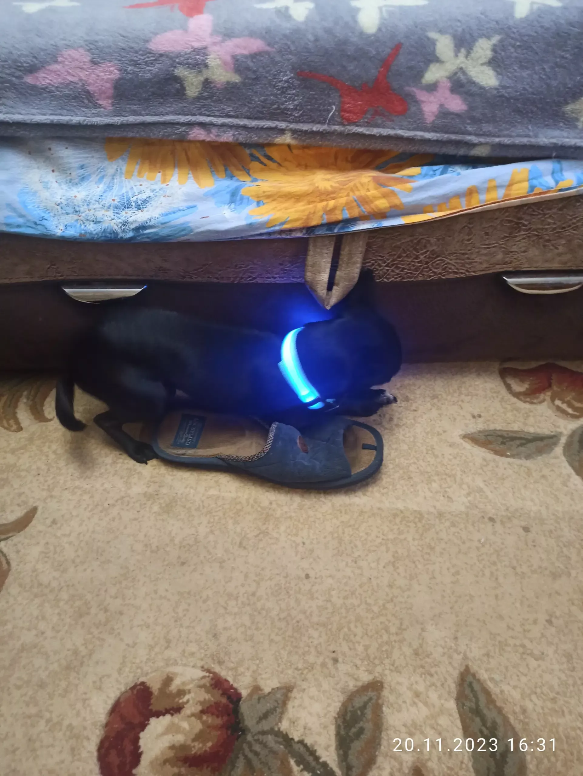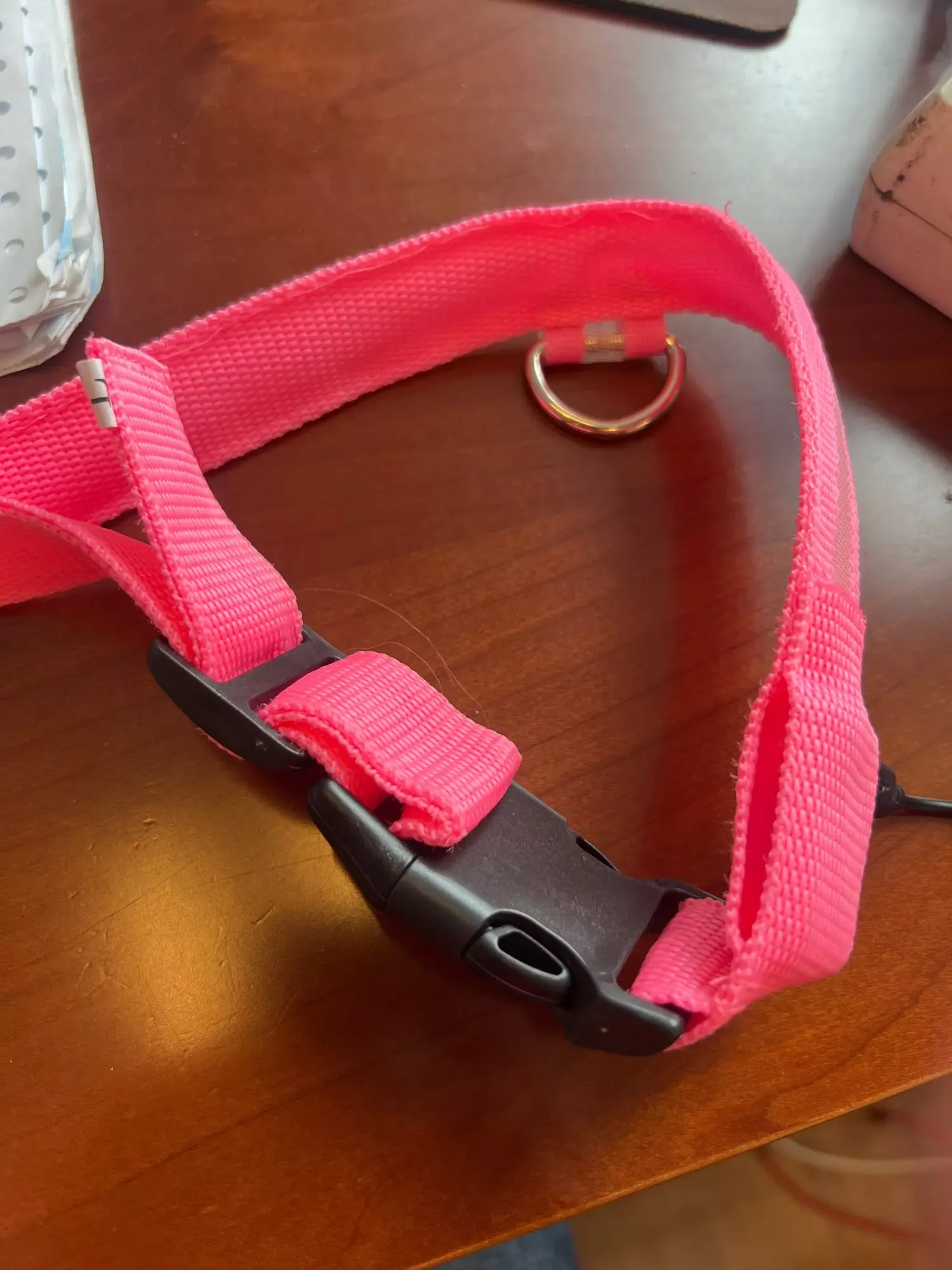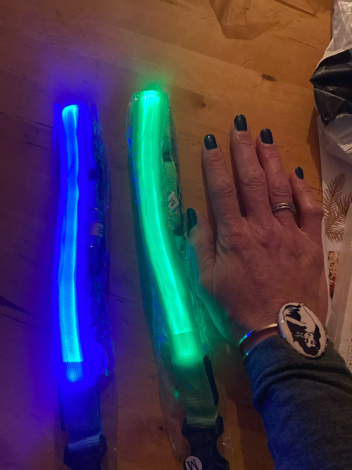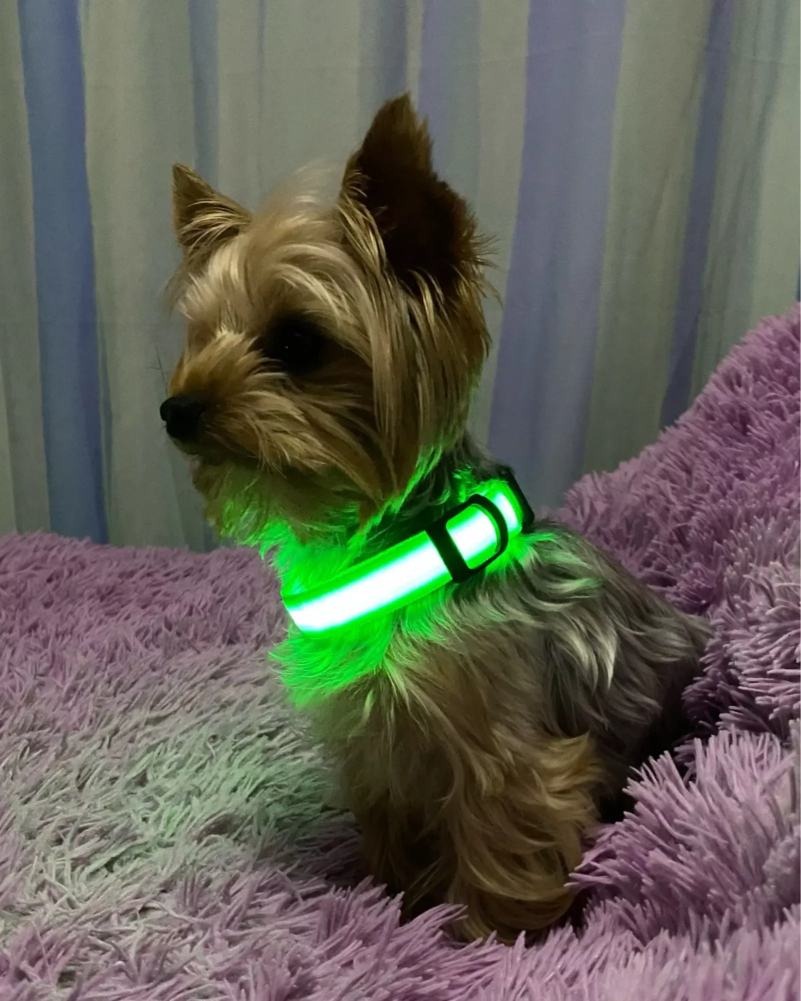 Walking at 3 a.m. has become safer with this brightly lit collar, making us visible to traffic.