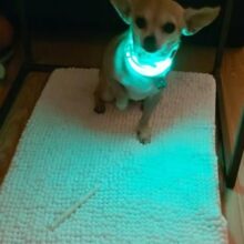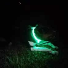 The green LED collar has made my mostly black dog visible at night.