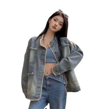 Casual Chic Ragged Denim Jacket – Women’s Retro-Inspired Outerwear