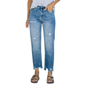 High Waist Distressed Straight-Leg Jeans – Women’s Casual Denim