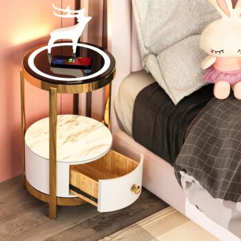 Modern Minimalist Nightstand with Wireless Charging and LED Light