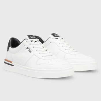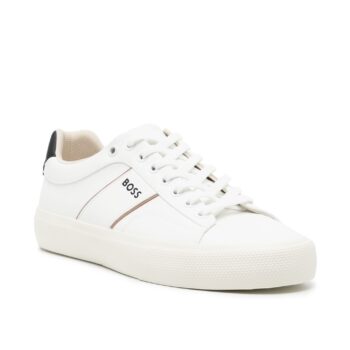Boss Men’s White Leather Sneakers with Lace-Up Design