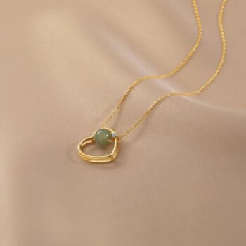 Gold Color Heart Pendant Necklace with Hetian Jade